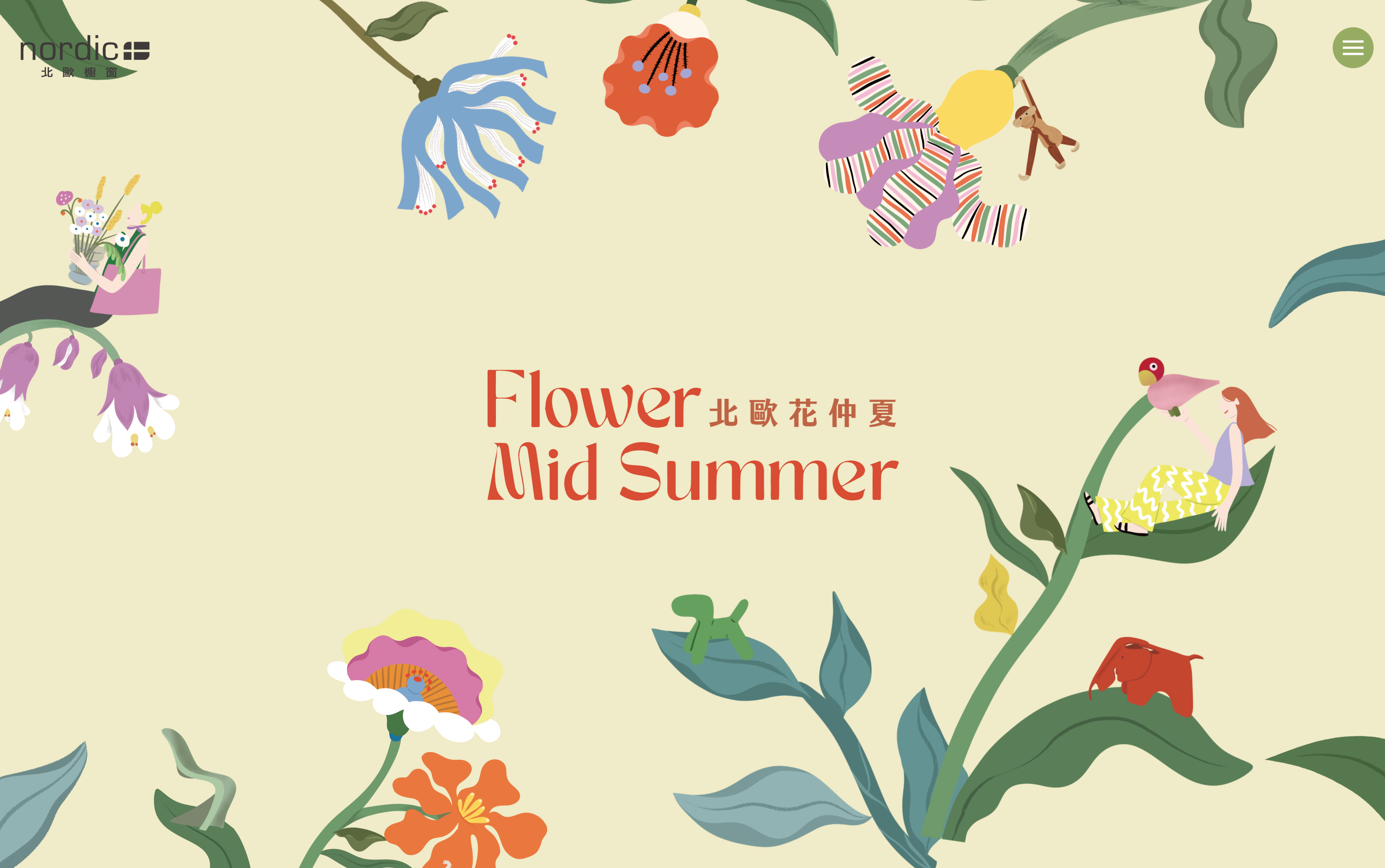 Key visual design and illustration for NORDIC 2023 Midsummer Event, an annual celebration hosted by MOT that highlights Nordic home lifestyle and design philosophy. The event bridges international home furnishings with a seamless online-to-store shopping experience, inviting customers to explore the timeless elegance, functionality, and warmth of Scandinavian interiors. The visual identity was applied across event collaterals, including digital ads, web banners, in-store signage, printed materials, and social media campaigns. It played a key role in establishing a warm, inviting atmosphere, drawing visitors into a curated lifestyle experience that was equal parts cultural celebration and retail immersion.